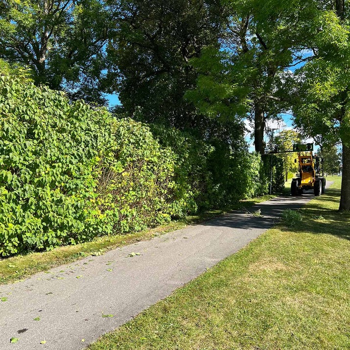 Clears an overgrown road quickly where branches block the road and damage lorries and other vehicles. A cutting width of 140 cm in combination with the lifting height of the frontloader ensures a clean and high corridor for vehicles to pass through.
