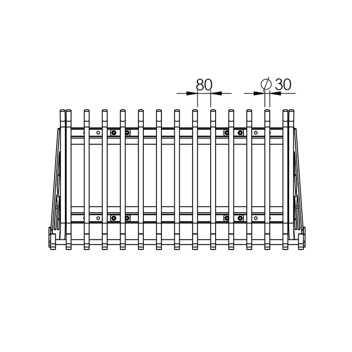 To withstand the pressure and high stresses that occur when handling stones, the stone sorting fork has a strong and stable construction. The two transverse profiles in the back of the stone sorting fork provide stability to the 30 mm round bars. In addition, the sides are cut from a single plate, providing great strength to the fork. Robust side plates that are 10 mm thick.