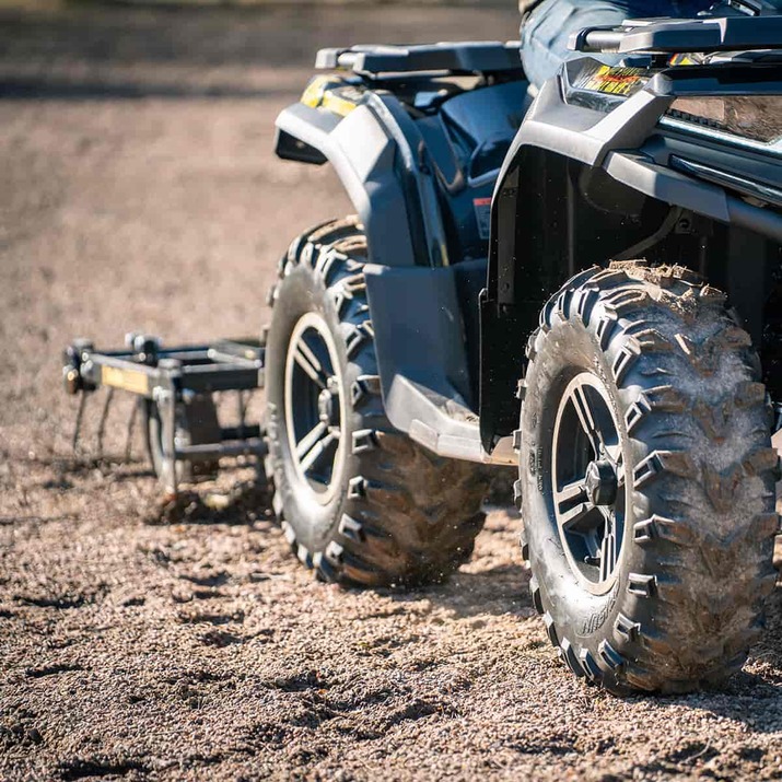 The yard harrow is a practical tool that you attach to your ATV or quad bike. The yard harrow cleans up, flattens out the ground, clears weeds and harrows in one and the same process. In other words, you get a tool that fulfils several purposes!