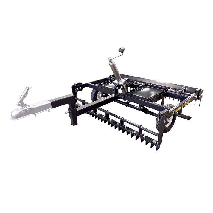 The yard harrow is most practical behind your ATV or quad bikes, but if you want you can tow it behind any vehicle. Thanks to the adjustable height of the tow bar and fork hitch which allows the tow bar to be adapted to any vehicle.