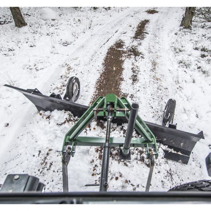 The support wheels are easy to fit with a pin and adjust for the correct working height and blade angle when clearing snow. A particularly useful function on unfrozen ground, dragging gravel roads and other adjustment work.